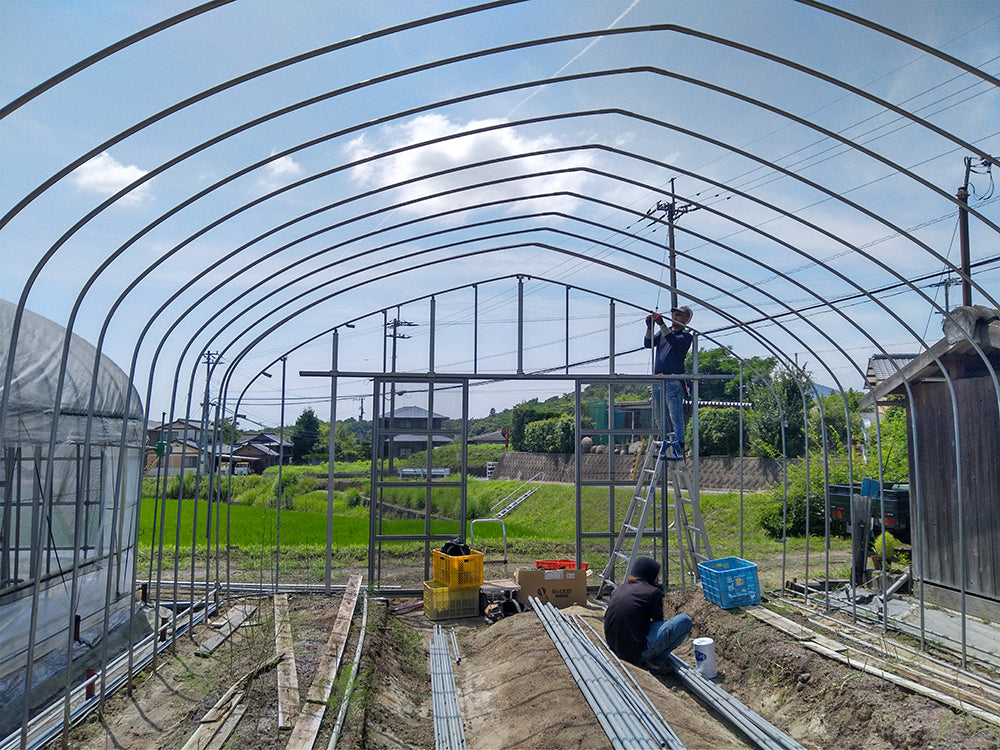 私たちは自分たちの手でハウス建設に挑戦し、そこから獲得したノウハウを、生産者の皆様にお伝えしたいと思っています。